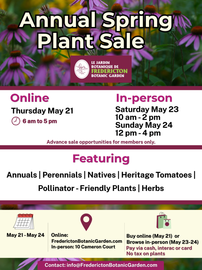 Spring is in full bloom at the Fredericton Botanic Garden, and our Annual Spring Plant Sale is back for an exciting in-person weekend on May 24!