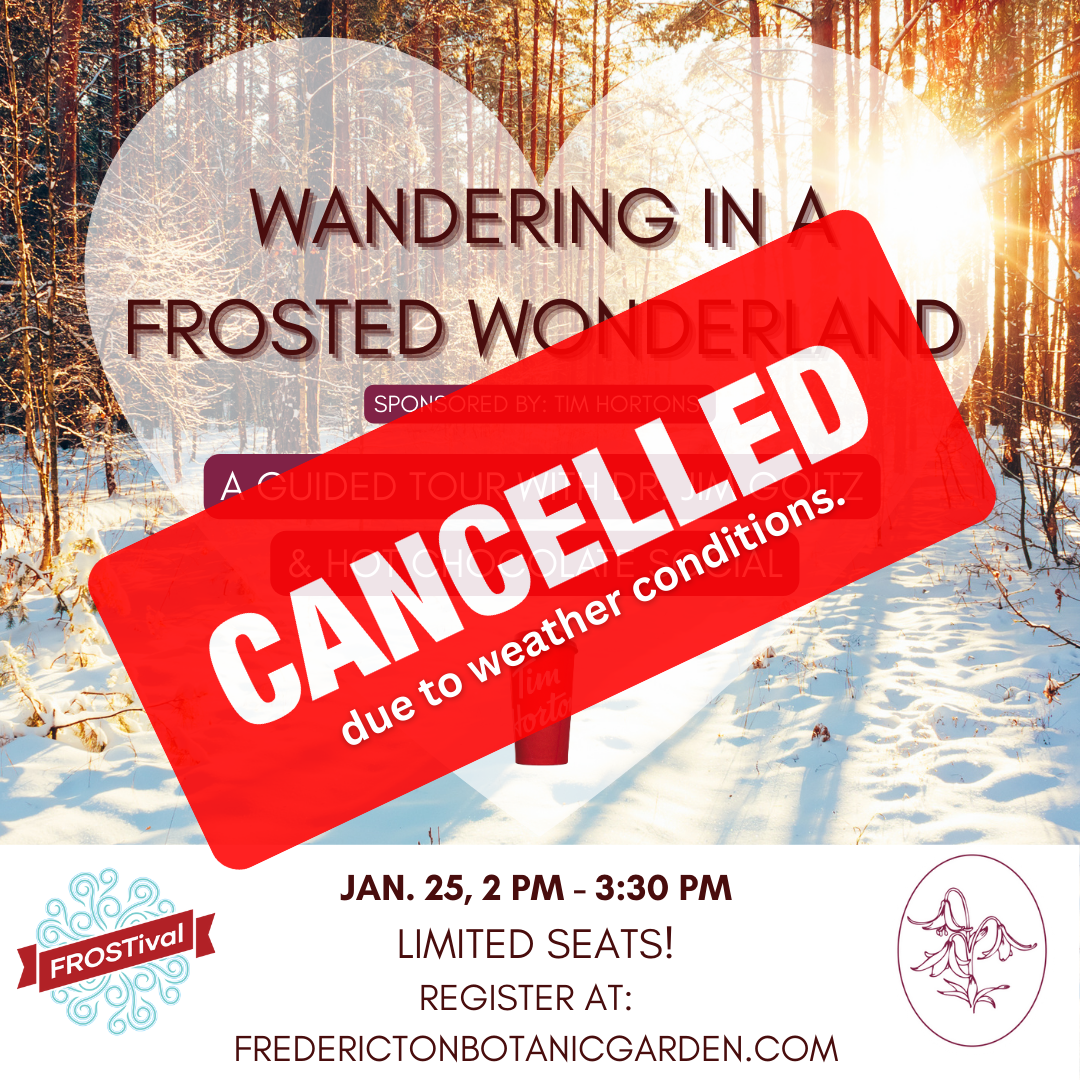 Step into a winter wonderland at the Fredericton Botanic Garden with our annual Walking in a Frosted Wonderland tour, led by Jim.Enjoy a guided winter walk through the Garden as you explore its beauty under frost and snow.Learn about winter plant life, seasonal changes, and the Garden’s year-round charm.Warm up afterward with hot chocolate and […]